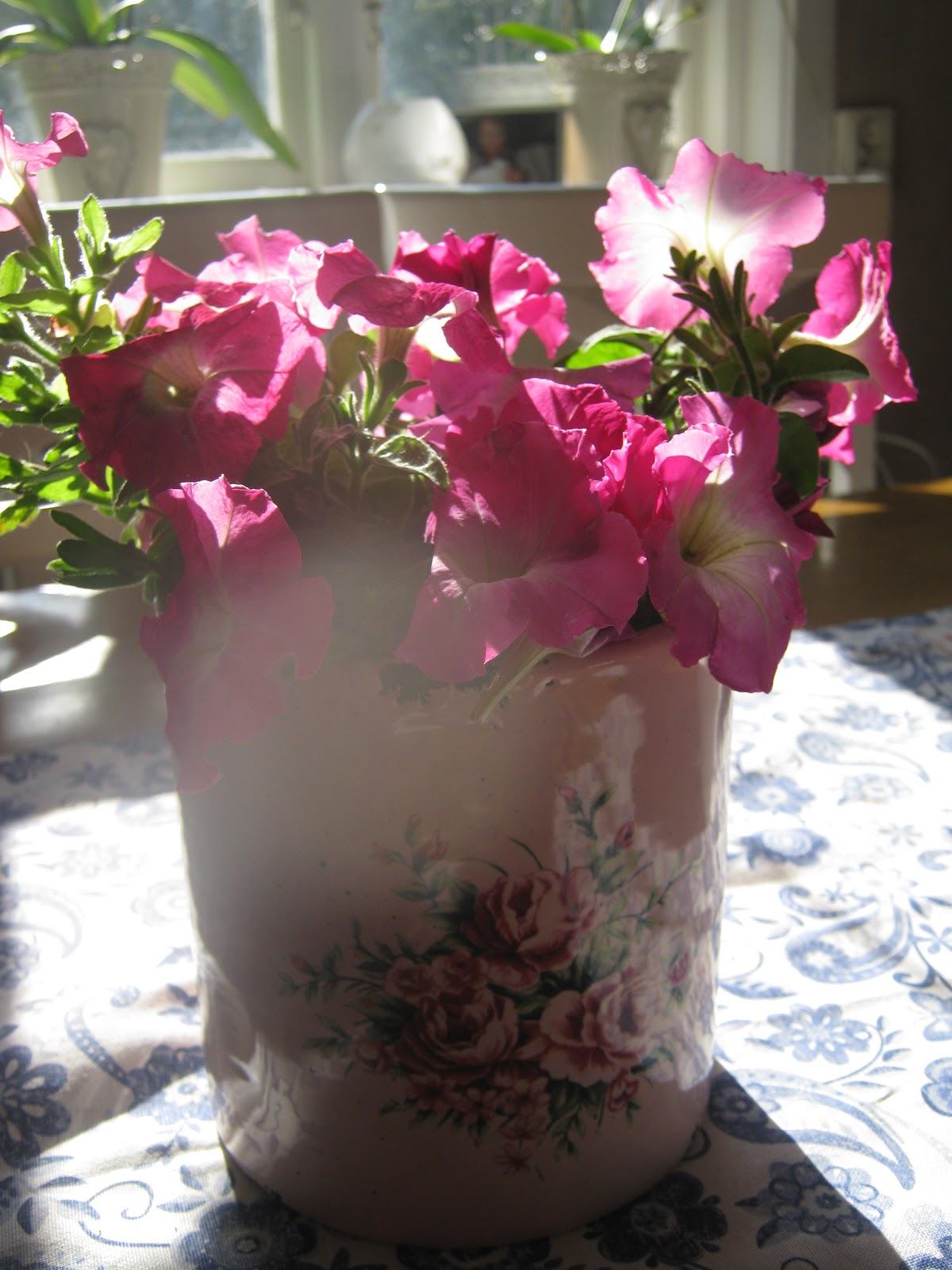 | Plockade in de sista blommande blommorna med namn jag aldrig kommer ihåg (panseer, pioner, perenner eller nått??).... |